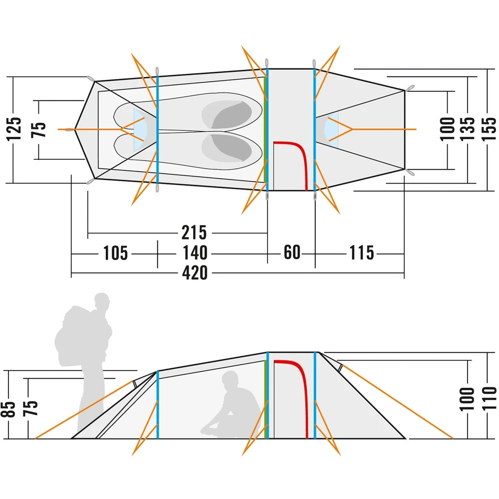 The Tatonka Okisba 2 Person Tent is the best choice for those who don’t want to sleep with all their equipment on a challenging trip. It features a vestibule in the centre that can be used as storage space or as a separate cooking area that’s sheltered from the wind. And what’s more the outer fabric is made of thin 5-fold silicone-coated Nylon 6.6 Ripstop material – lightweight, durable and ultra compact. Perfect for camping overseas.
