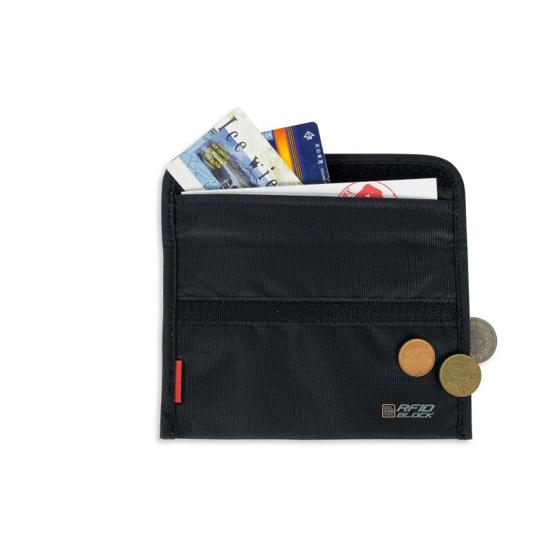 The Tatonka RFID Block series for wallets, document folders and pouches offers 100% protection against data theft from wireless card readers. The Cryptalloy film built into the various products will shield your cards 100% from radio waves in all commonly used commercial frequencies. This offers maximum shielding in all relevant RFID frequency ranges (from 100 kHz to 4 GHz i.e. low-frequency range, high-frequency range and ultra high-frequency range).