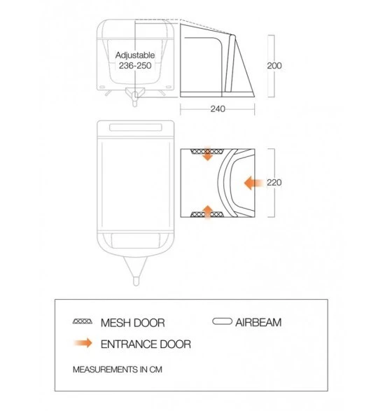 Vango Capella 220 RV Porch Awning Specifications: