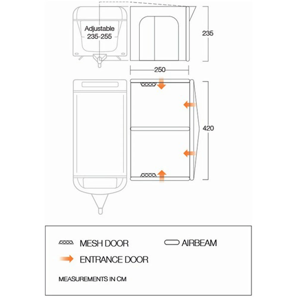 - This awning has multiple additions available for enhanced functionality – Please check Vango’s additions table for more details