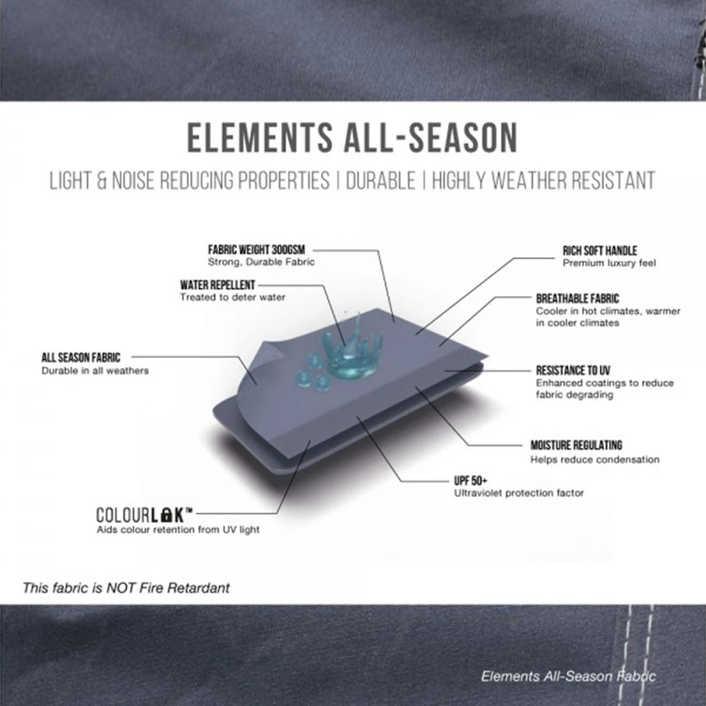 - Elements All Season Fabric – Created through extensive development and testing to ensure it’s able to cope with extended exposure to the elements. This fabric is both soft to the touch and extremely strong and durable. Perfectly suited to extended or seasonal pitching with a UPF 50 rating, and ColourLok technology to aid colour retention